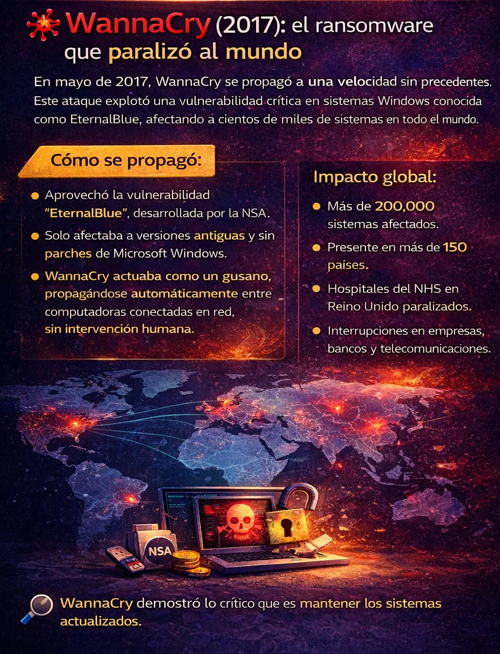Ataques como WannaCry y NotPetya demostraron que una vulnerabilidad sin corregir puede convertirse en una crisis global en cuestión de horas.